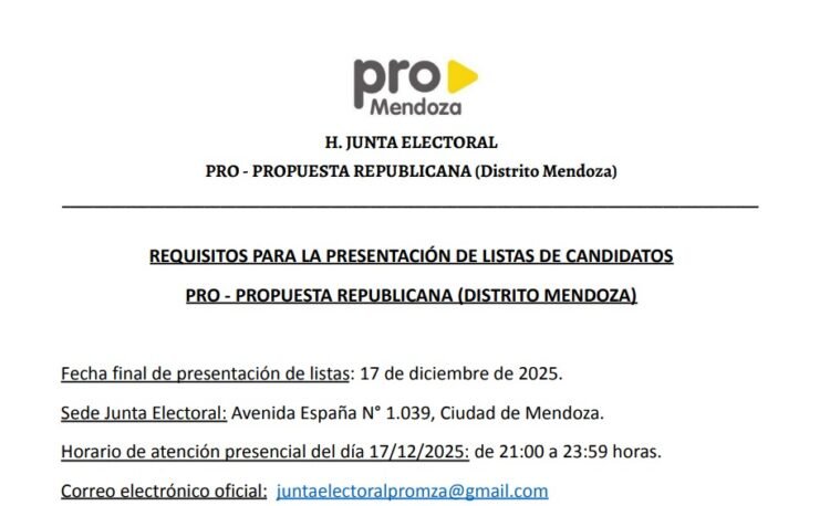 La Junta Electoral del Pro Distrito Mendoza pone a conocimiento de los señores afiliados el contenido del Acta N° 4/2025.